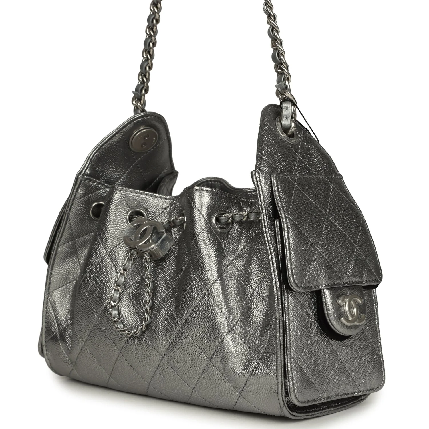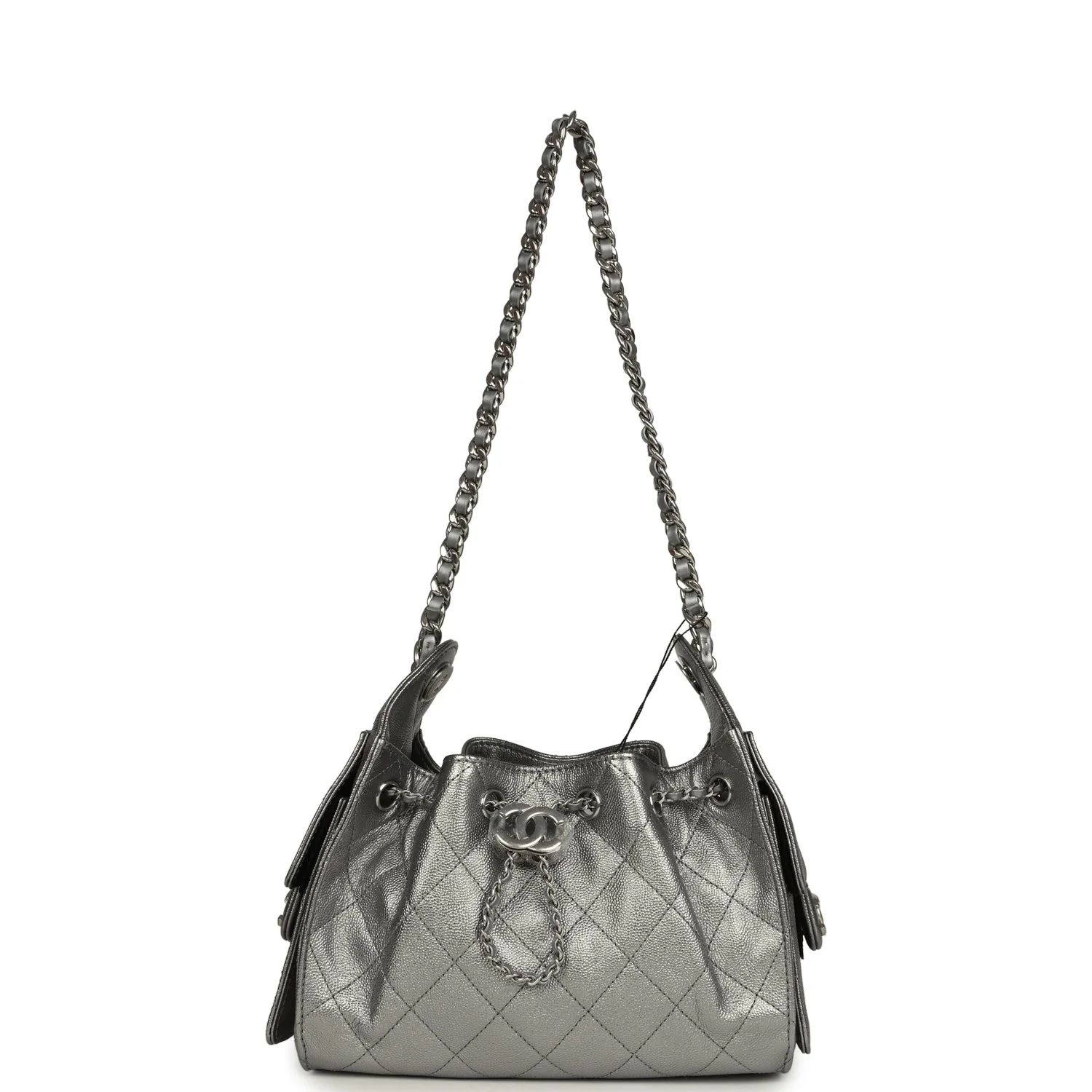 הכירו את תיק הדגל היוקרתי – Chanel Mini 25 Metallic Silver Caviar Bucket Bag.